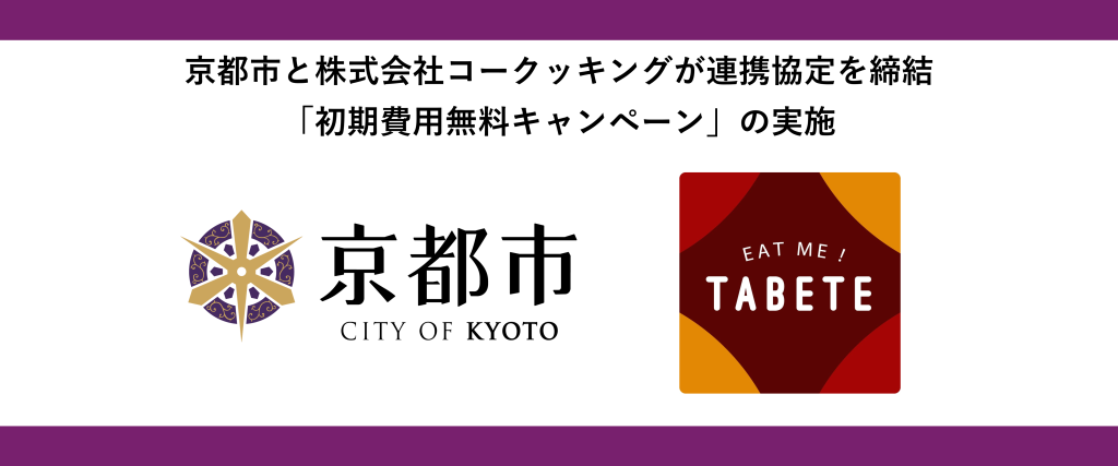 京都市と株式会社コークッキングが連携協定を締結「初期費用無料キャンペーン」の実施